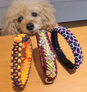 パラコードを使用したハンドメイドの首輪、リード、ハーネスを販売します。 他のパラコード販売店ではちょっと見かけない、ひと手間・ふた手間かけた一点ものがたくさん! サイズ調整できるハーネスは気道を圧迫しない安全設計。 ぜひ、お手に取ってご覧ください。 全ての商品が試着OKです。 お好きな色やデザインでオーダーもできますので、お気軽にご相談ください。 イベント当日の決済方法 現金/各種QRコード決済/クレジットカード決済